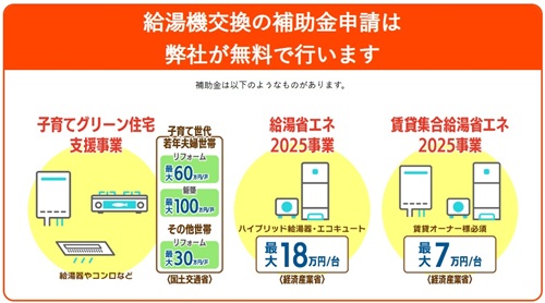 給湯器交換の補助金申請の無料対応